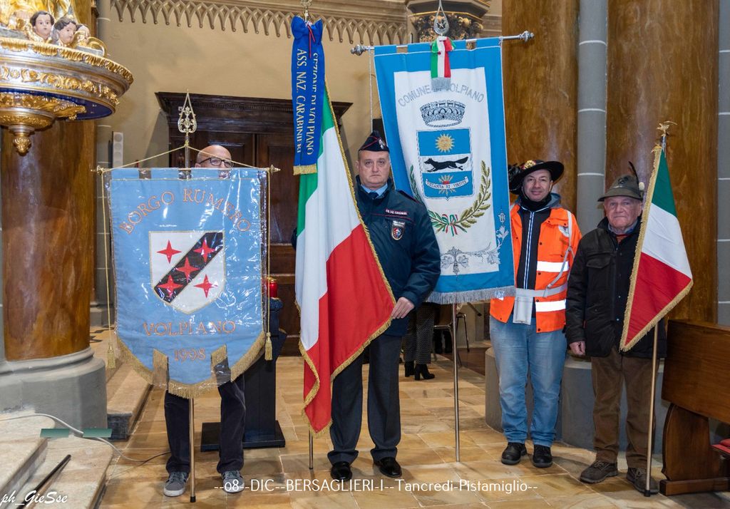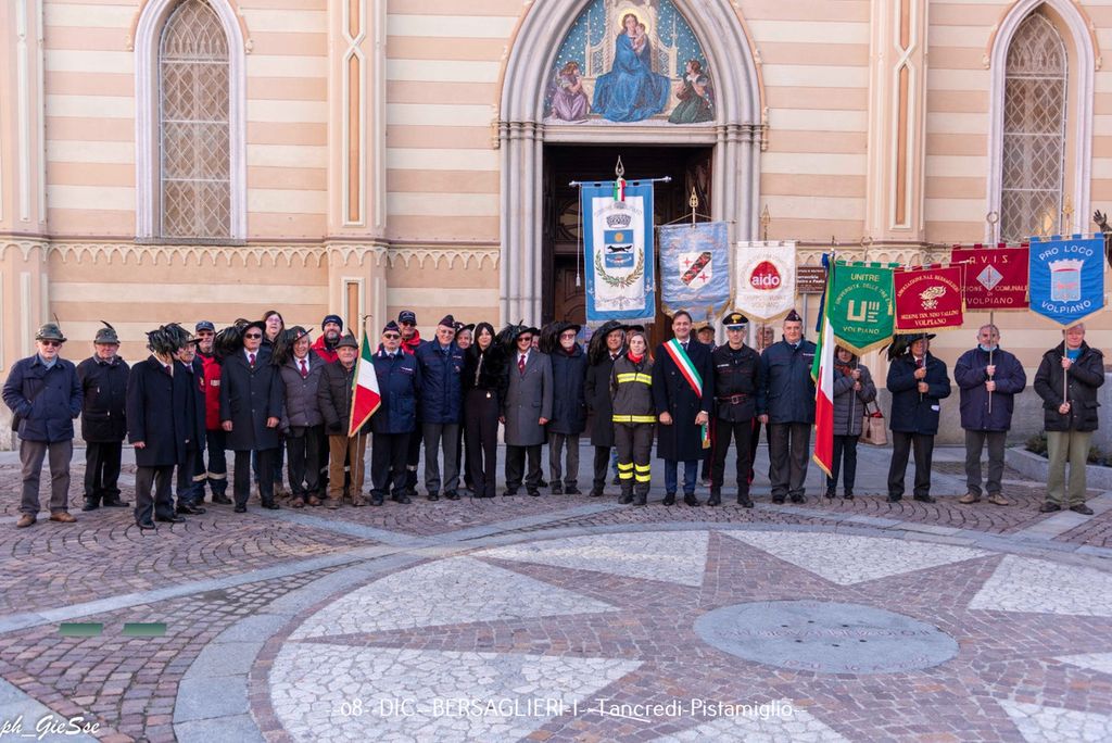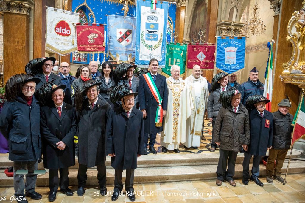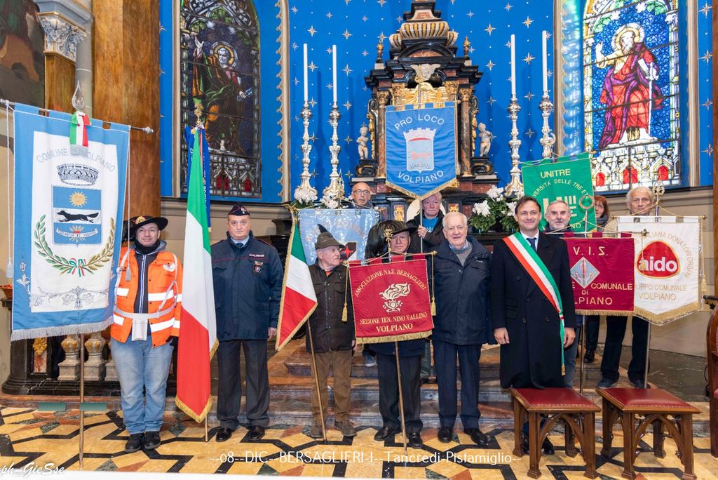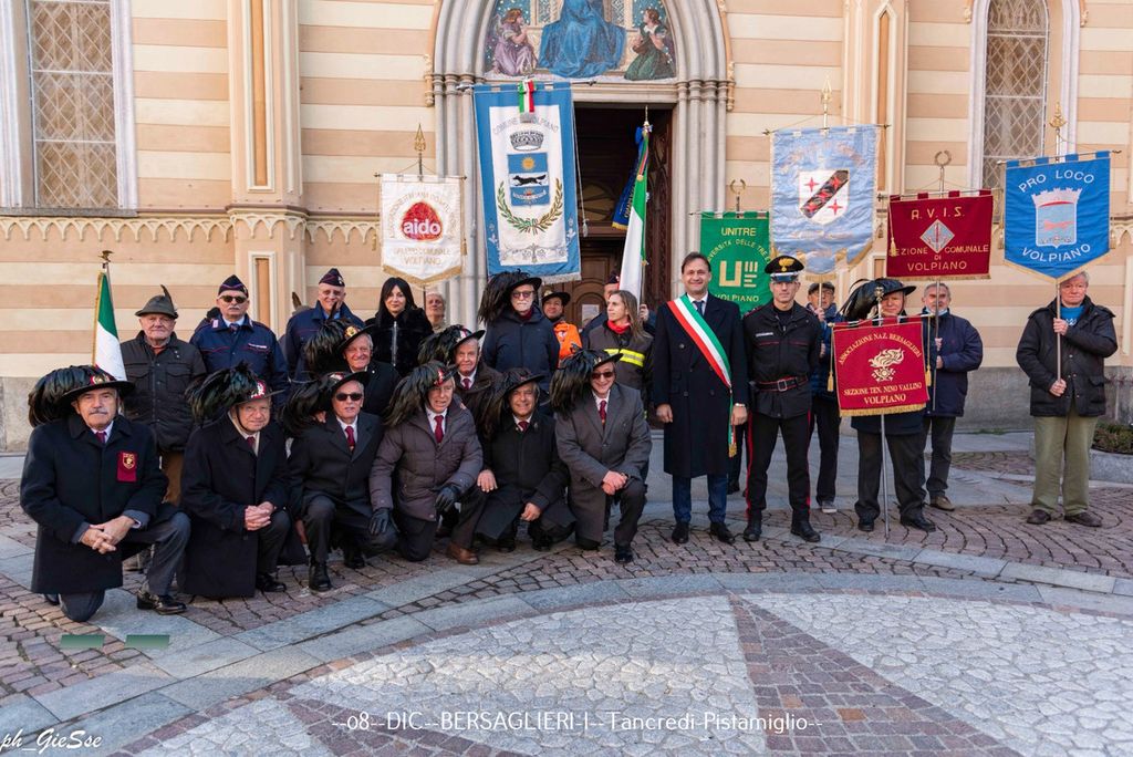 Otto dicembre festa dell'Immacolata: come consuetudine i Bersaglieri della sezione Ten. Nino Vallino di Volpiano, si sono ritrovati in piazza Cavour nei pressi del monumento, per l'annuale festa sezionale. Erano presenti oltre al sindaco Panichelli, il presidente Provinciale ANB Manca, una rappresentanza dei Carabinieri di Volpiano, vigili del fuoco e la consigliera Bigliotto. Oltre al Gonfalone del Comune ed il Labaro dei Bersaglieri erano presenti le Bandieri e i Labari dall'Ass. Naz. Alpini, l'Ass. NAZ. Carabinieri, la Proloco, l'Aido, l'Avis, Borgo Rumero e Unitre.Alle ore 10.30 si è provveduto all'Alzabandiera,suguita della deposizione della Corona d'alloro in memoria dei catuti e dei defunti Bersaglieri.