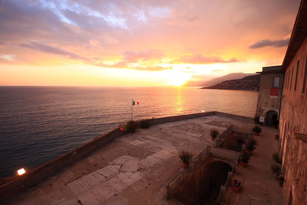 Una visita allo spazio museale, dunque, aperto anche durante le festività natalizie oppure una facile passeggiata verso Porta Canarda, l’unica porta romana rimasta integra tra le otto che un tempo circondavano l’abitato e raggiungibile in pochi minuti per mezzo di uno straordinario sentiero balcone a vista di Capo Mortola e della Costa Azzurra. Il modo migliore per assaporare appieno il fascino del mare d’inverno, la cui irrequietezza imprevedibile ben si coglie anche dalla terrazza del Forte stesso.