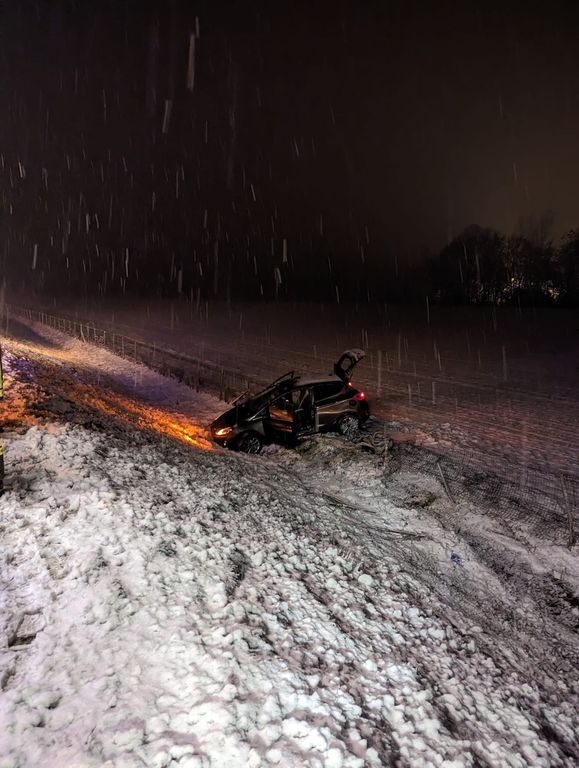 Un'auto è uscita di strada per la neve ed è finita in una scarpata. E' successo questa sera sulla bretella Ivrea-Santhià, all'altezza dello svincolo Albiano in direzione Ivrea.