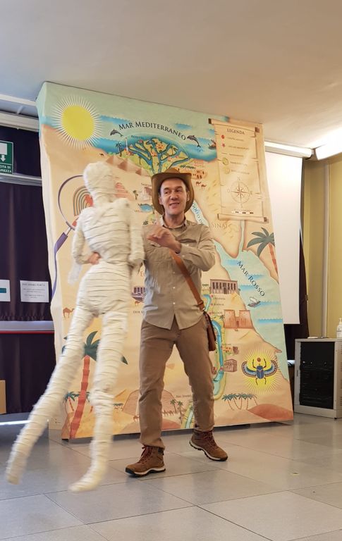 Un archeologo buffo, curioso e bizzarro conduce il pubblico in un vero e proprio viaggio nel tempo. Dal 2022 si torna indietro di 5000 anni. Abbandoniamo la nostra epoca per ritrovarci catapultati alla scoperta di un popolo e di un’epoca che ha lasciato un’eredità ricca e unica: gli Antichi Egizi. A nostra disposizione solamente una mappa e 51 carte-gioco che ci aiuteranno a non perdere la bussola e ci permetteranno di simulare dei veri e propri momenti di vita quotidiana del tempo. Percorrendo le sponde del Nilo e le sue terre fertili scopriremo verità storiche e una civiltà inaspettatamente simile alla nostra in quanto ad abitudini e stili di vita!