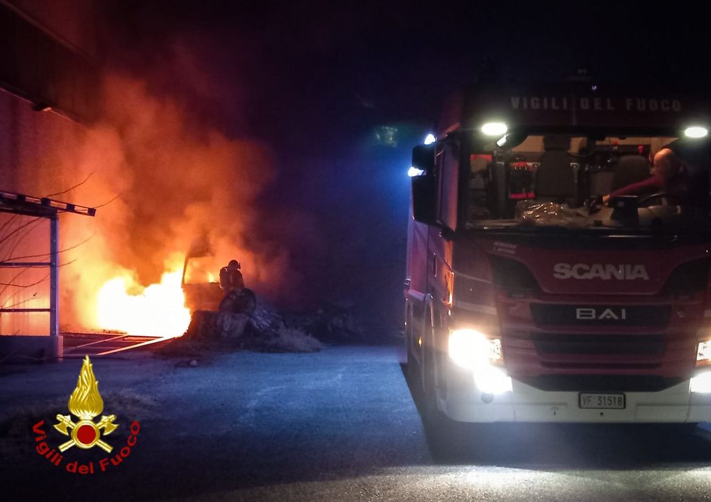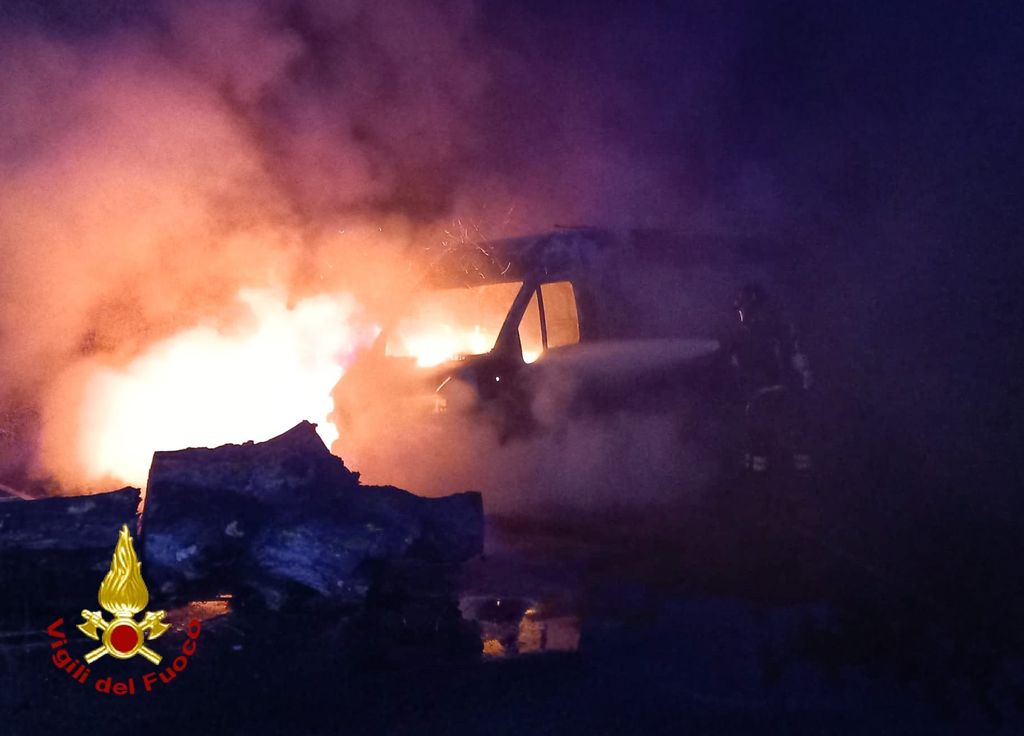 Brucia un furgone parcheggiato nel piazzale di un'azienda: vigili del fuoco in azione a Condove