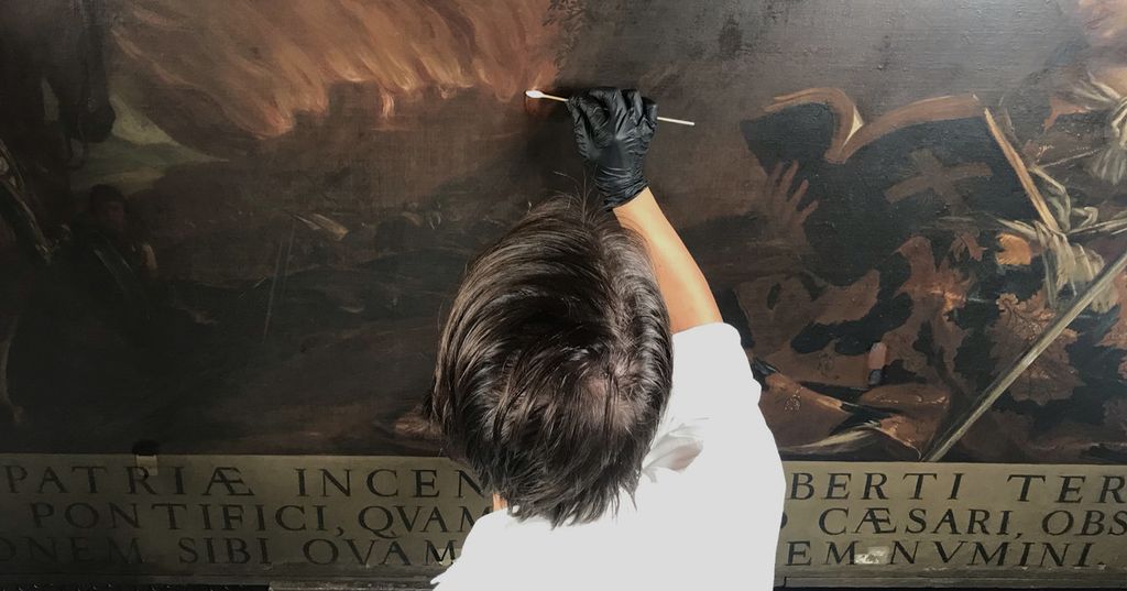 In primis, chiunque abbia la curiosità di vedere in maniera ravvicinata le diverse fasi di un intervento di restauro è infatti il benvenuto nella Sala degli Staffieri di Palazzo Reale dove, occupandosi Mnemosyne Servizi anche di promozione e comunicazione di eventi legati alla tutela dei beni culturali, è stato allestito un set per le riprese in diretta del lavoro. Si tratta di una proposta inedita, mirata alla condivisione di molti momenti dell’intervento, sia con i visitatori in sala sia con chi volesse seguire il proseguo da remoto, tramite la pagina dedicata www.restaurionair.it all’interno del sito di Mnemosyne Servizi, www.mnemosyne.it