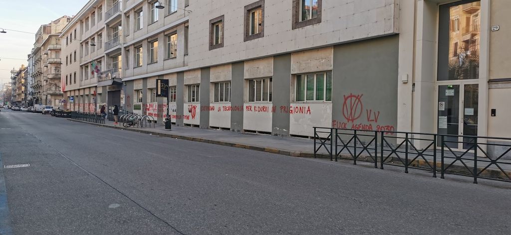 Ennesimo raid nel capoluogo piemontese: qualche settimana fa, nella stessa zona - a poche centinaia di metri di distanza - scritte analoghe erano comparse sulla facciata dell'Isef e su quella del liceo Cavour