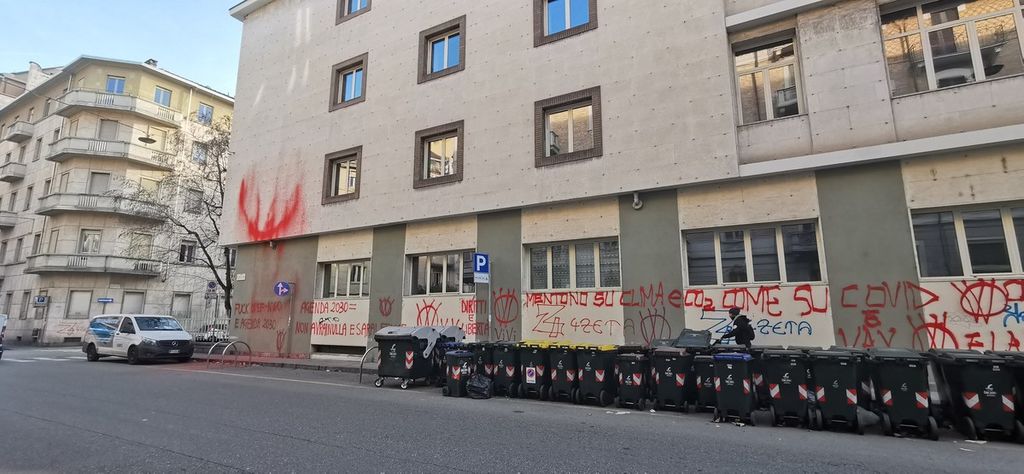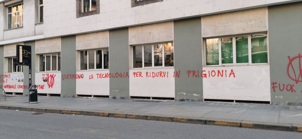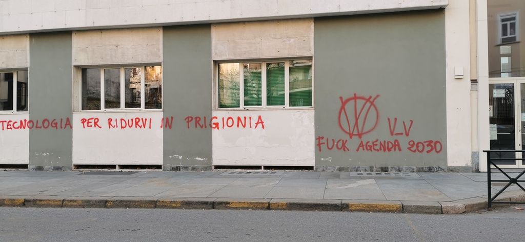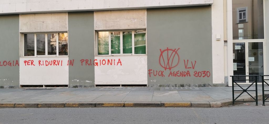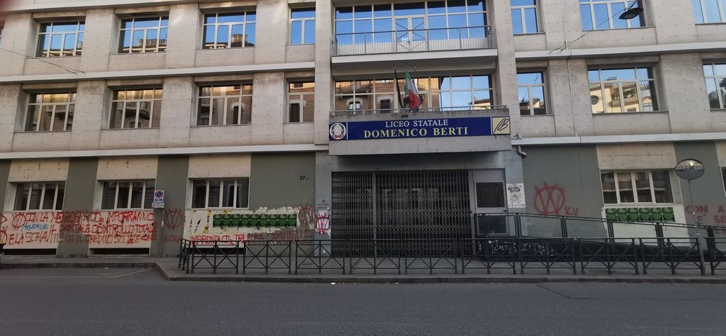 Scritte No Vax comparse nella notte sui muri del liceo Berti, in via Duchessa Jolanda