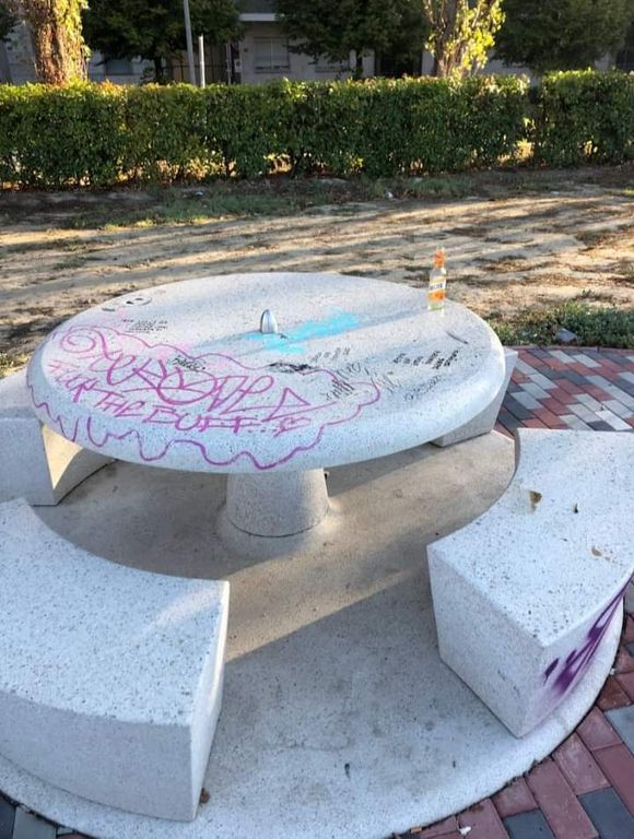 Ripuliti dai graffiti i tavoli e i cartelli della Clessidra Verde