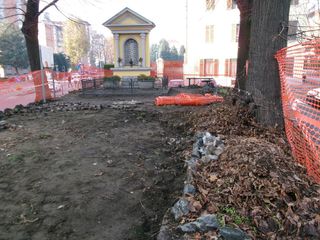 Sono in corso in questi giorni a Grugliasco i lavori di riqualificazione e sistemazione delle pavimentazioni del cippo di San Giacomo in piazza Papa Giovanni XXIII e dei marciapiedi di via Leon Tron e viale Echirolles.