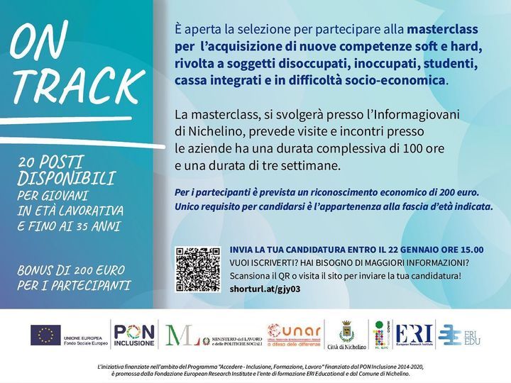 Il momento economico che stiamo vivendo è molto delicato, specialmente per i giovani in cerca di (prima) occupazione. Ed allora, per chi ha tra i 20 e i 35 anni, è senza lavoro, è inoccupato o cassa integrato, oppure si trova in situazioni di difficoltà socio-economica, il comune di Nichelino lancia il progetto 'On track - Traiettorie per l'inclusione socio-lavorativa'.