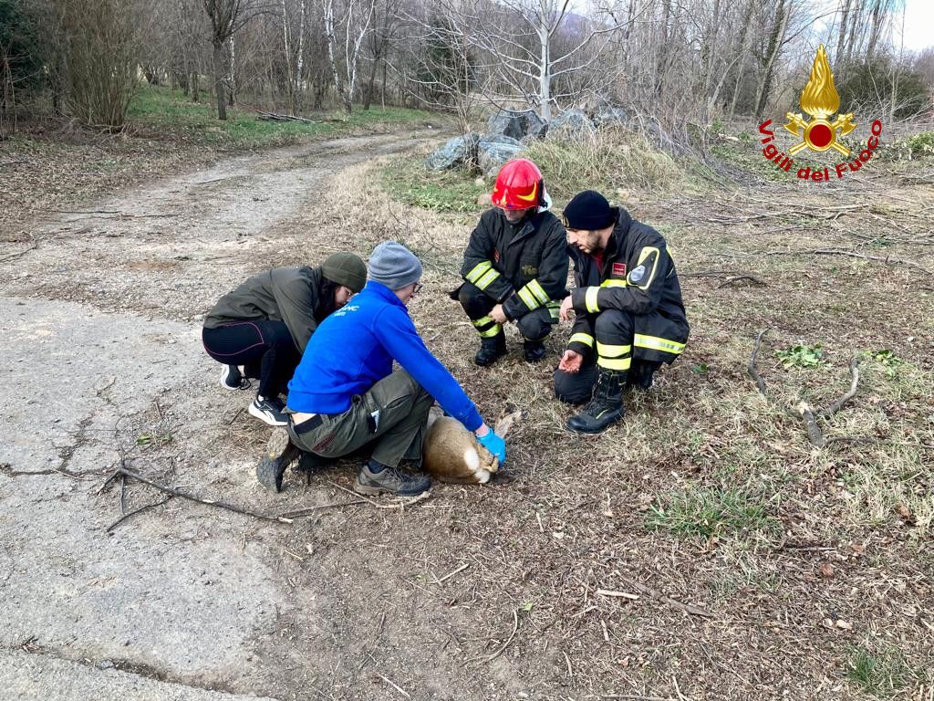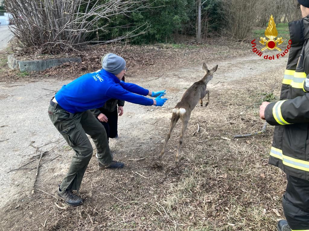 Capriolo precipita in un fossato ai piedi del Musinè: salvato dai Vigili del fuoco [VIDEO e FOTO]