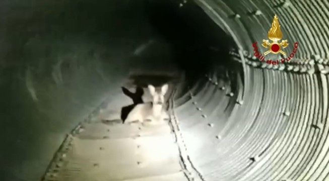 Decisivo l'intervento dei volontari di Alpignano che, dopo aver percorso 300 metri in un tunnel sottoterra, lo hanno portato fuori e poi rimesso in libertà