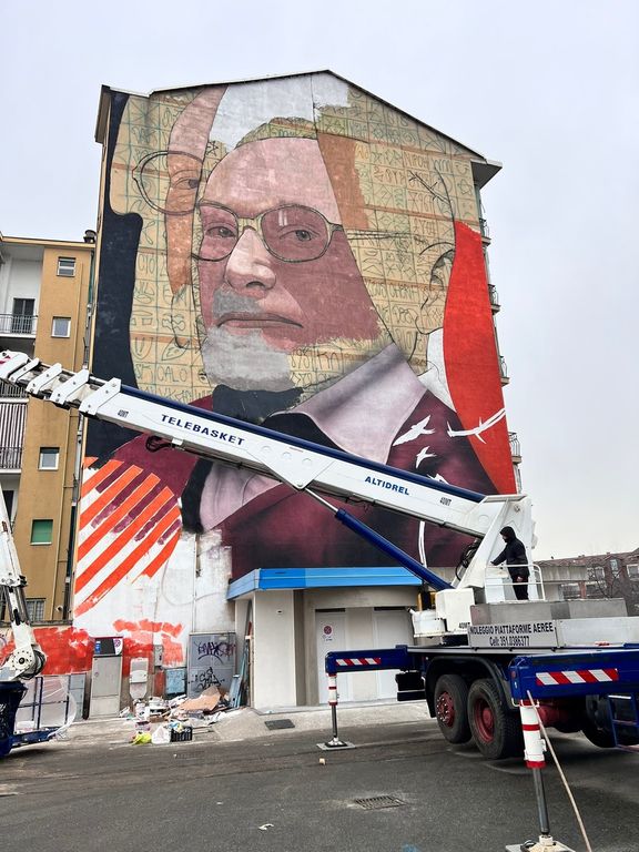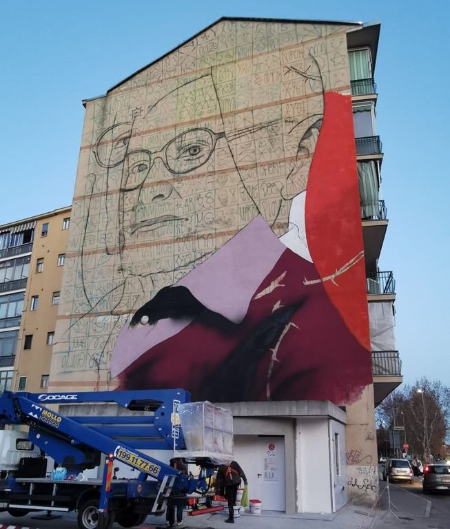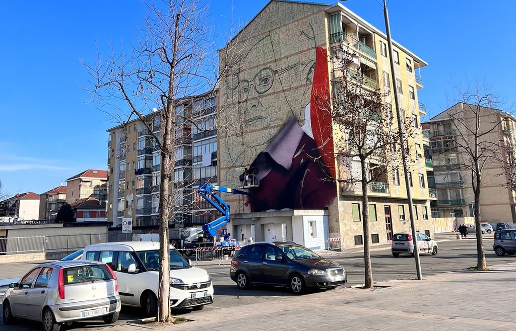 I lavori fervono in questi giorni in via Ponchielli, all'angolo con via I Maggio, dove è in corso di allestimento questo nuovo murales, che occuperà la facciata di un edificio di sei piani. Anche questa nuova opera rientra nel secondo capitolo di Nichelino Lights Up Festival, progetto di riqualificazione urbana attraverso i muri della Città, con l'assessore Fiodor Verzola (padrino dell'iniziativa) e l'autore Giulio Rosk (quello del grande murales di Palermo dedicato a Falcone e Borsellino, ndr) che ancora non hanno voluto svelare l'identità del personaggio, ma da quello che già si intravede è facile capire che si tratta del grande scrittore e intellettuale, che aveva vissuto l'orrore dell'Olocausto e dei campi di concentramento.