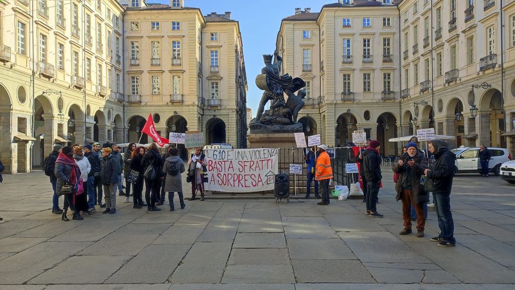 Attivisti per la casa protestano davanti al Comune di Torino: "Basta sfratti a sorpresa"