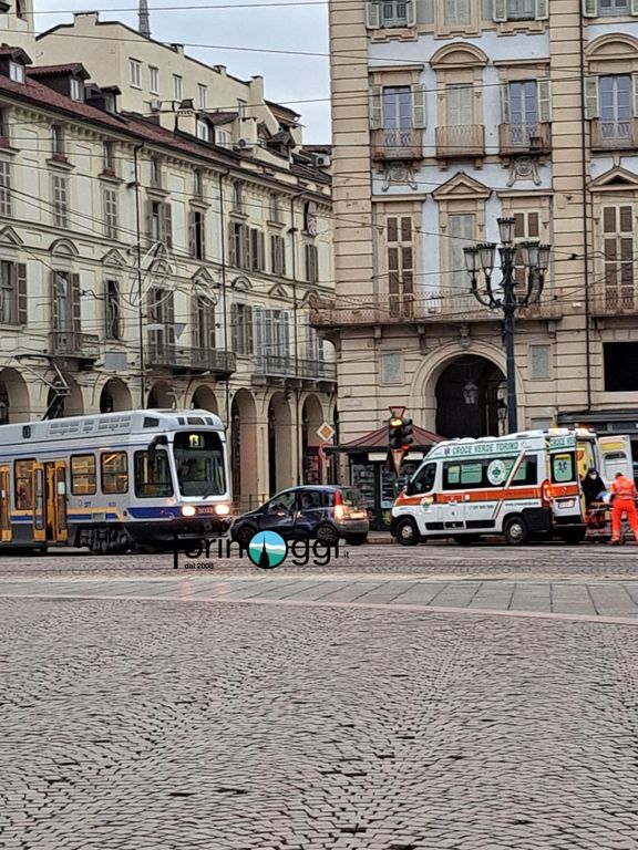 Incidente questa mattina in piazza Castello: tram contro auto quasi all'imbocco con via Po