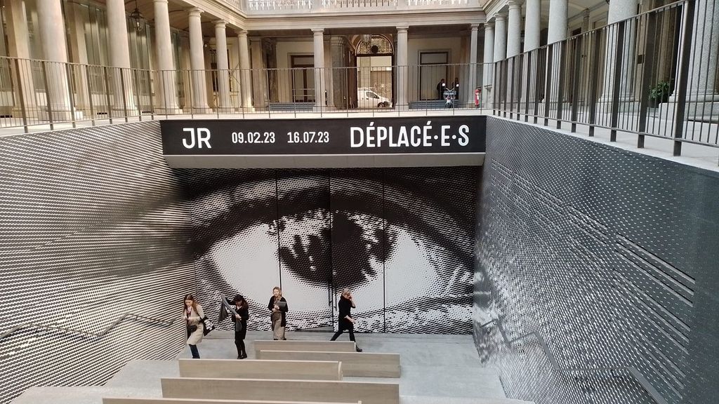 I problemi dei migranti e dei rifugiati, sempre più di scottante attualità, fanno da molto tempo parte dell’indagine di JR. Il progetto Déplacé∙e∙s, cominciato nel 2022, riunisce per la prima volta in questa mostra alcune immagini scattate dall’artista in zone di crisi, dall’Ucraina sconvolta dalla guerra fino agli sterminati campi profughi di Mugombwa, in Rwanda, e di Mbera, in Mauritania, Cùcuta in Colombia e a Lesbo, in Grecia per fare riflettere sulle difficili condizioni in cui oggi versano migliaia di persone a causa di conflitti, guerre, carestie, cambiamenti climatici e coinvolgere pubblici esclusi dal circuito artistico e culturale all’insegna di valori come libertà, immaginazione, creatività e partecipazione.