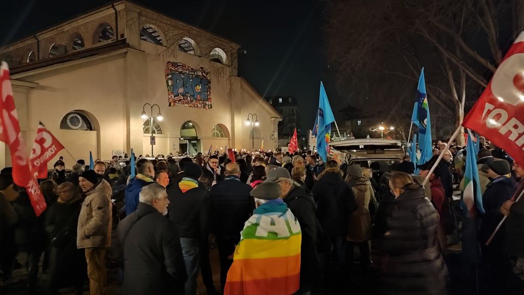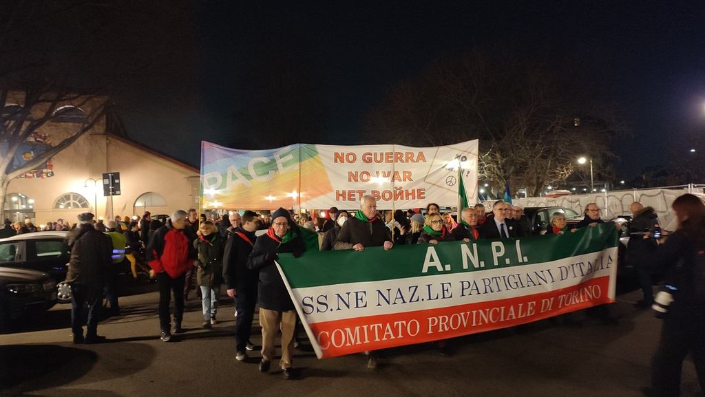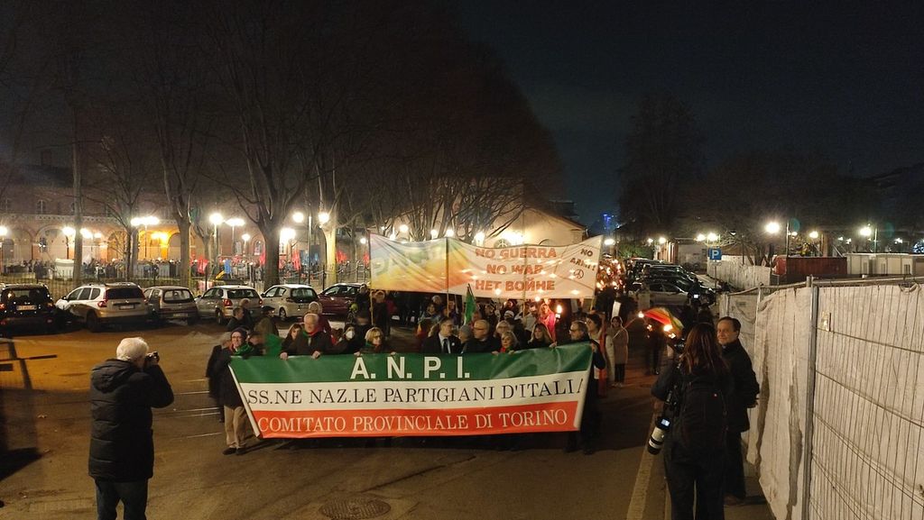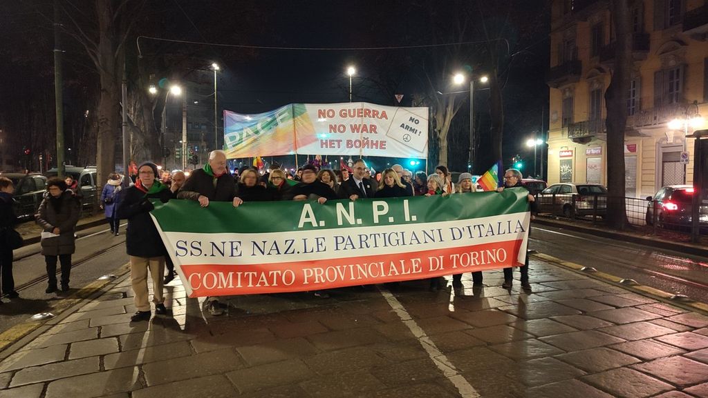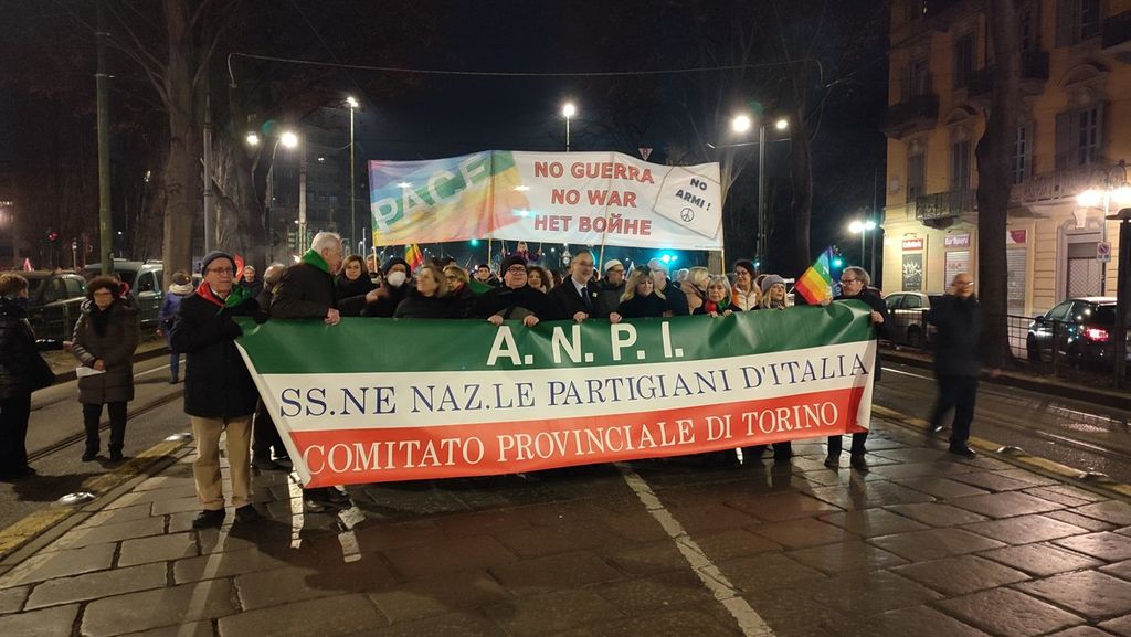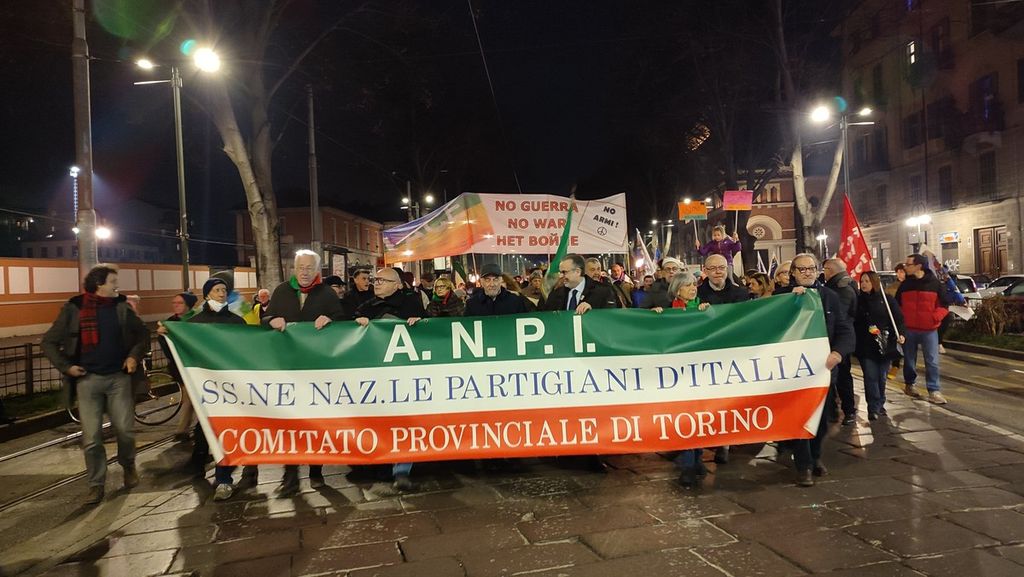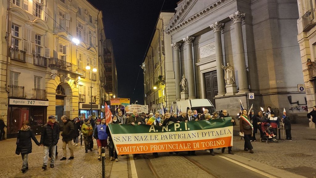 Torino, in centinaia per le vie del centro alla fiaccolata dell'Anpi contro la guerra e le armi