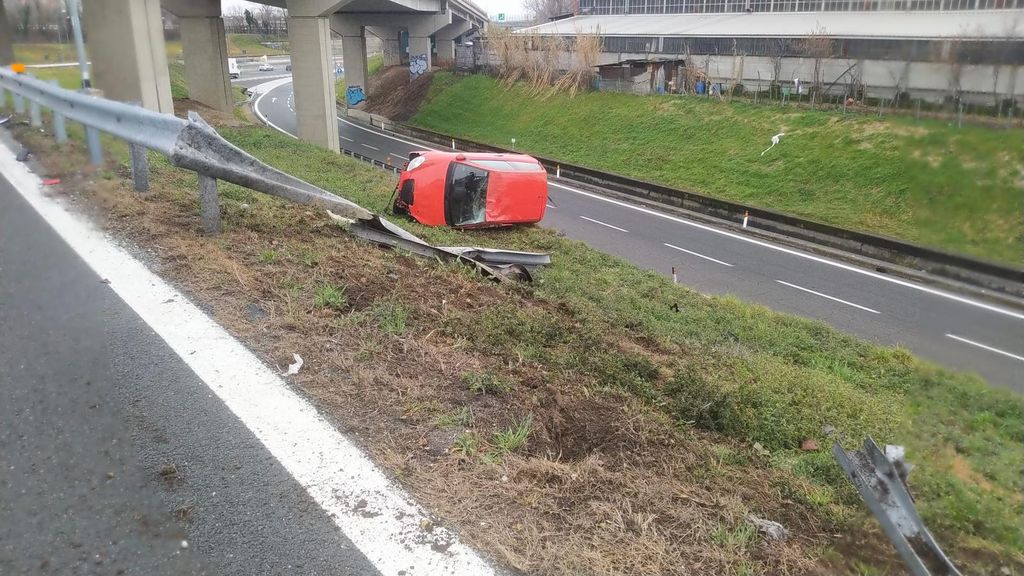 Tangenziale, auto esce di strada e si ribalta vicino allo svincolo del Drosso: tanta paura ma nessun ferito