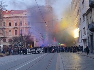 Si è radunato per partire da piazza Solferino, infatti, il corteo annunciato in settimana dalle sigle del mondo anarchico con un richiamo alla mobilitazione lanciato dallo slogan "la lotta non finisce". Un richiamo che ha fatto scattare l'allerta massima da parte delle forze dell'ordine per possibili disordini; ingente, a proposito, è lo schieramento di agenti e mezzi in assetto antisommossa. Sono 30, nel frattempo, i militanti identificati dalla polizia tra ieri e oggi, tra cui alcuni francesi e tedeschi.