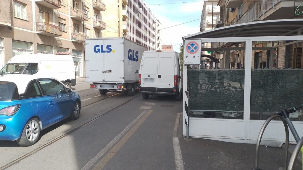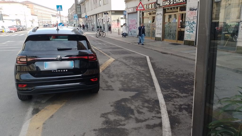 Ne sono alcuni esempi la ciclabile di via Nizza, su entrambi i lati, nonostante tra la strada e la ciclabile ci sia proprio una fila di parcheggi ad hoc. Ma anche via Sacchi, soprattutto nel tratto finale vicino a Porta Nuova. O ancora altre ciclabili meno centrali, ma in strade altrettanto praticate come via Cialdini o simili.