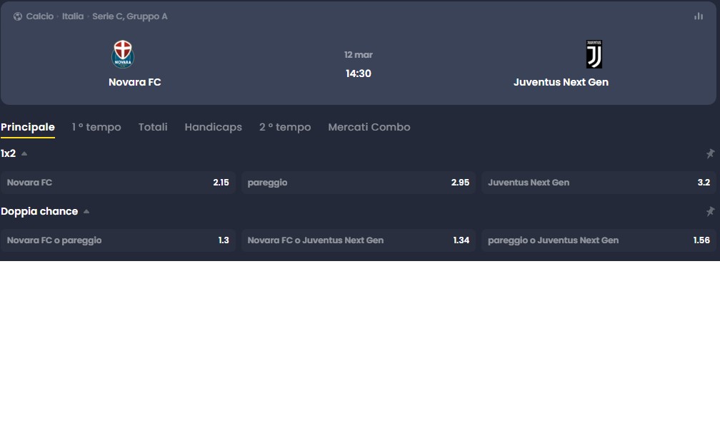 Pronostici dei bookmaker su Novara-Juventus Next Gen