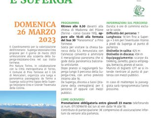 Il Coordinamento per la valorizzazione dell’itinerario escursionistico Superga-Vezzolano-Crea propone per domenica 26 marzo un’escursione alla scoperta del tratto torinese dell’itinerario. All’iniziativa parteciperà la Consigliera metropolitana Sonia Cambursano, delegata allo sviluppo economico, alle attività produttive, al turismo e alla pianificazione strategica.