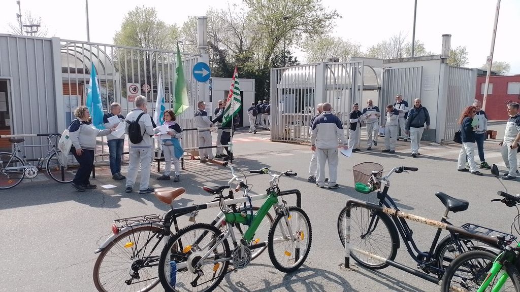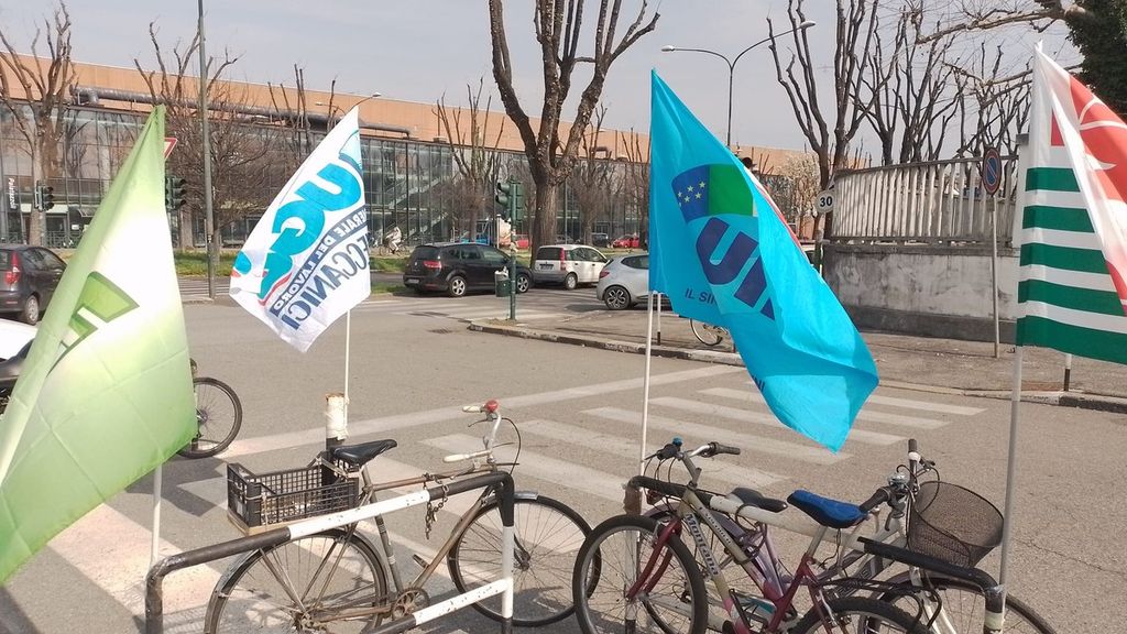 Colleghi che sfilano dai e verso i cancelli. Qualcuno prende il volantino, appena sfiorato dalle bandiere appese alle transenne, altri tirano dritto, masticando qualche parola di insoddisfazione. Una scena piuttosto tipica di queste iniziative (anche per il mondo della politica), sintomo di un malcontento che anche la rappresentanza fatica a intercettare del tutto.