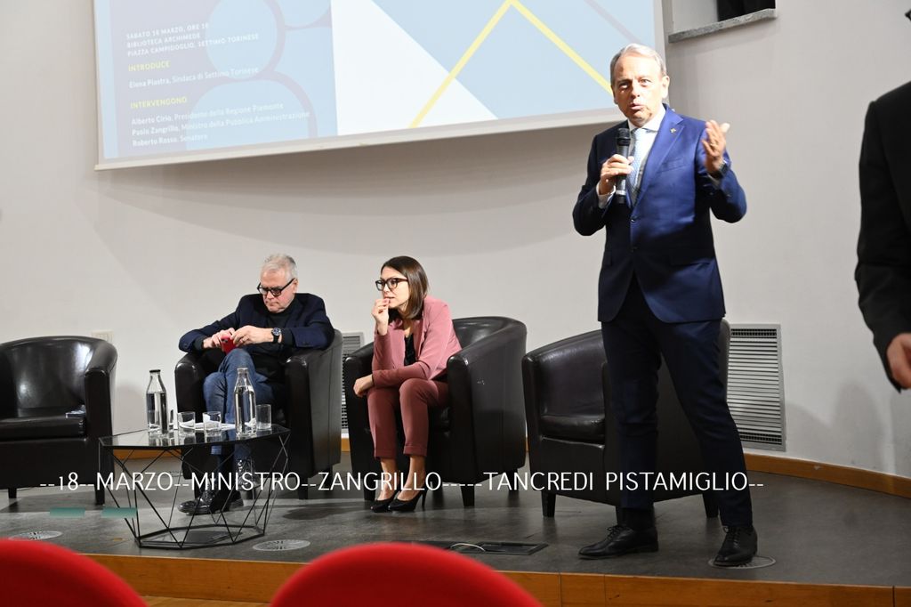 Nuova visita a Settimo Torinese del ministro Paolo Zangrillo: il titolare del dicastero per la pubblica amministrazioen del governo guidato da Giorgia Meloni è stato infatti ospite della Sala Levi, dove ha incontrato esponenti locali del centrodestra, rappresentanti delle istituzioni (in primis la sindaca, Elena Piastra) e il pubblico che ha preso posto in platea.