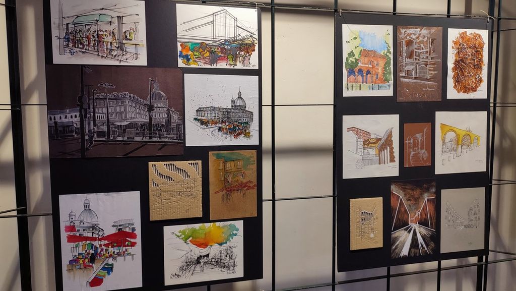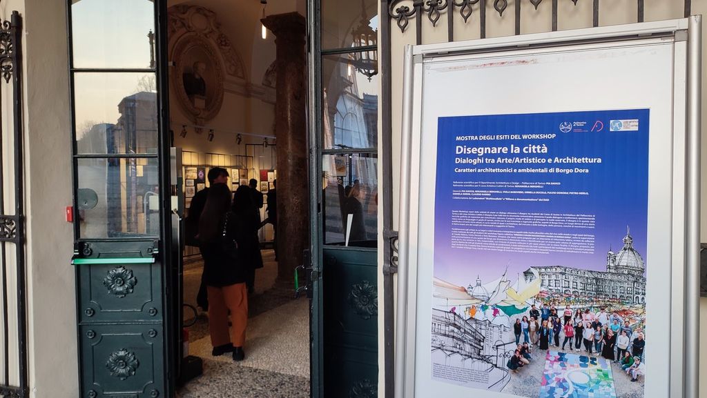 Per realizzare le opere, gli aspiranti artisti e gli aspiranti architetti hanno frequentato un apposito workshop intitolato, appunto, “Disegnare la città”: “Si tratta – hanno spiegato i docenti che hanno curato l'iniziativa – di un'esperienza che prosegue da diversi anni con l'obiettivo di far dialogare studenti di diverse realtà attraverso il disegno, in grado di trasformarsi in linguaggio espressivo per comunicare e trasmettere l'anima della città. Per 5 giorni, i ragazzi sono stati a Borgo Dora per respirarne l'atmosfera e riportarla dal vivo su carta, elaborando gli schizzi protagonisti della mostra in aula. A essere esposta, inoltre, è un'opera collettiva realizzata su tela come proposta di urbanismo tattico per creare un punto di riferimento visivo e un luogo di aggregazione senza costi sul quartiere”.