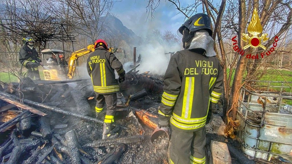 A fuoco un deposito di legna a Sant'Ambrogio, in tre ore i pompieri domano le fiamme