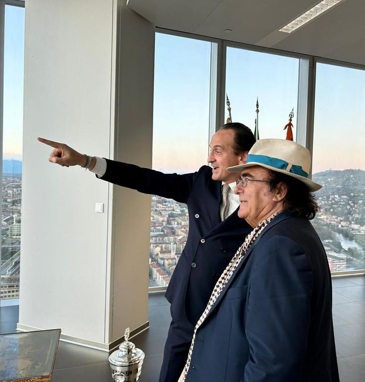 "Avere qui, in questo grattacielo Al Bano, è una grande emozione, non è un mistero che sia il mio cantante preferito e che sia un suo grande estimatore anche perché è una persona dal cuore grande che non si sottrae a iniziative benefiche, come quelle che so che ha fatto poco fa, prima di venire qui". Un brindisi ha suggellato l’incontro a cui era presente anche il vice presidente del della Giunta regionale, Fabio Carosso.