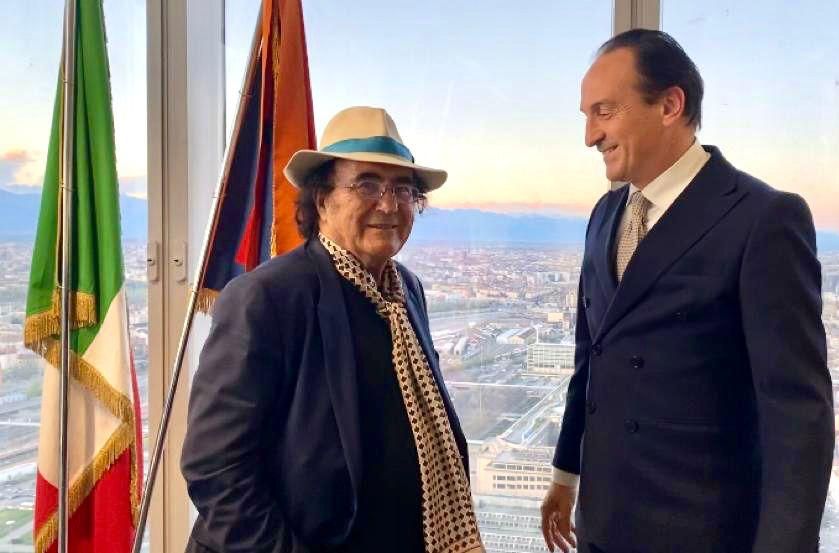 "Qui c’è un grande italiano, che ha scritto un pezzo di storia e che la sta scrivendo ancora" . Così il presidente del Piemonte, Alberto Cirio, ha accolto Al Bano nella sede del grattacielo della Regione.