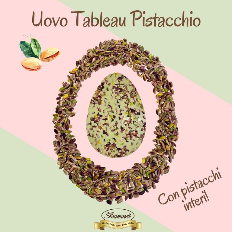 Volete qualche esempio? Le nuove "Uova Tableau" con nocciole intere o pistacchi interi, la nostra rivisitazione delle uova di Pasqua tradizionali.