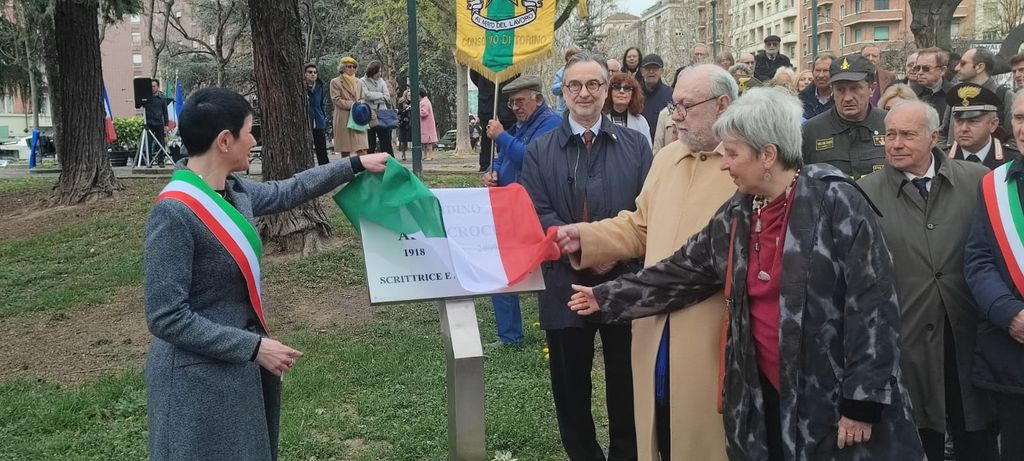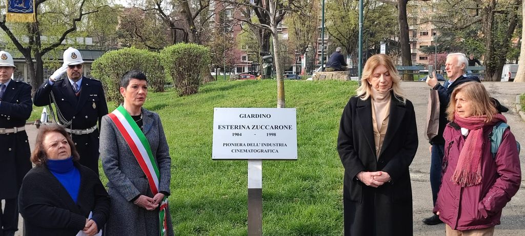 Da questa mattina la parte nord e quella sud del giardino di Piazza Adriano sono intitolati a due donne, rispettivamente la montatrice cinematografica Esterina Zuccarone e la saggista Alda Croce.