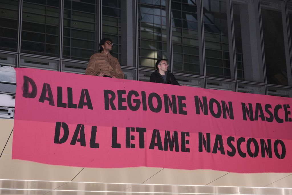 L'azione simbolica si inserisce in un programma di iniziative che Extinction Rebellion sta portando avanti con l’obiettivo di richiamare l'attenzione della cittadinanza sulle responsabilità del governo regionale - e nazionale - nell’aggravarsi della crisi idrica e, più in generale, di quella climatica. “Siamo qui vestiti di fiori perché sappiamo che una rinascita è ancora possibile” aggiunge Aurelia. “Di fronte alle inadempienze della Regione ci ribelliamo chiedendo di agire: finché non sarà fatto, come fiori continueremo a crescere da questa merda!” conclude dall’ingresso del Grattacielo.