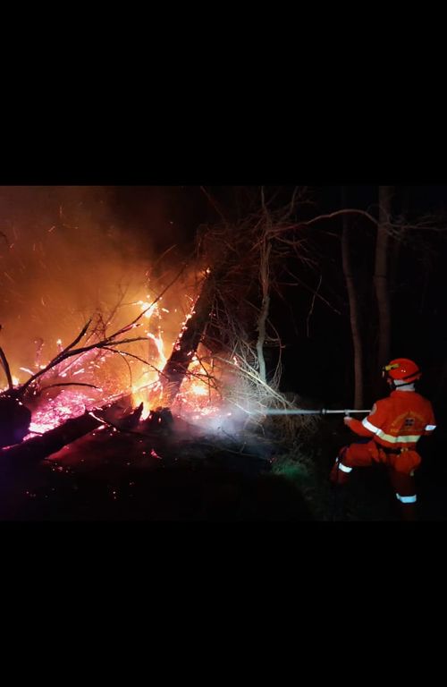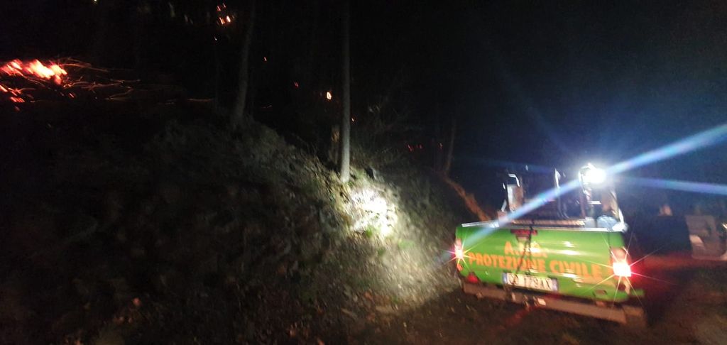 I volontari stanno ancora presidiando l'area per evitare che si riaccendano le fiamme a causa del vento
