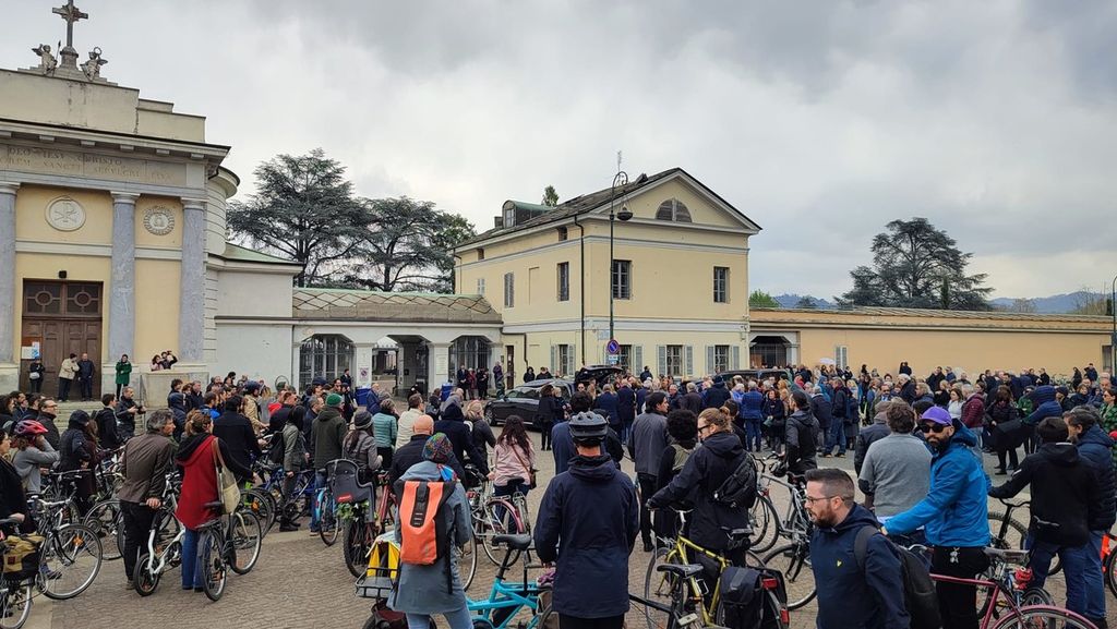 Parole di vita e campanelli di bici per Gabriele Del Carlo: l'ultimo saluto all'attivista ciclabile più sorridente e tenace di Torino [FOTO e VIDEO]