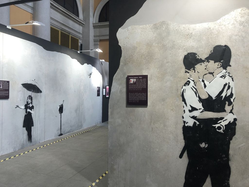Il percorso presenta oltre 90 opere di cui 30 murales a grandezza naturale realizzati da giovani street artist internazionali che raccontano il mondo del misterioso artista britannico, famoso per affrontare con ironia temi politici e di denuncia sociale. Vicino ai più iconici capolavori “Flower Thrower” e “Girl with Balloon” che lo hanno reso famoso in tutto il mondo, trova spazio anche iBanksy, una speciale sezione video che ripercorre la storia e il messaggio sociale dei murales realizzati da Banksy in strade, muri e ponti di tutto il mondo