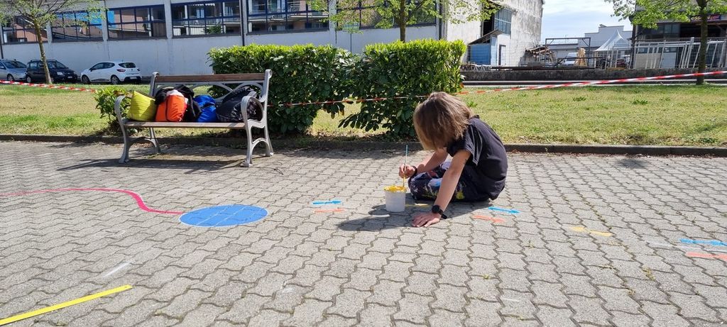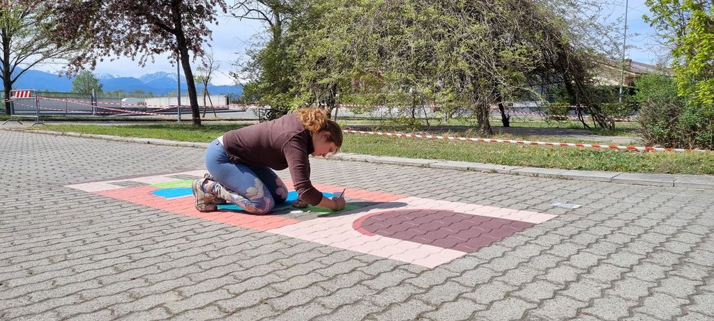 “Il 25 gennaio abbiamo incontrato i bambini delle quarte e quinte A e B e abbiamo fatto un lavoro di progettazione con loro – spiegano gli operatori di Circowow –. Li abbiamo fatti giocare e poi li abbiamo invitati a progettare dei giochi da realizzare in terra, fornendo loro degli spunti, che potevano seguire o meno”. Lavorando a gruppetti e fondendo le loro idee, i bimbi hanno prodotto delle bozze colorate, che sono state testate durante il cosiddetto ‘Color Day’ di marzo: “In questa occasione abbiamo disegnato con dei gessetti, per terra, nel cortile delle scuole, i giochi che avevano ideato, recependo anche eventuali modifiche e combinando le idee”. Dalla fantasia dei bimbi sono emersi “giochi molto colorati, che tengono conto di gusti differenti e richiamano simboli del paese come il campanile, la rotonda, il cavallo e la Via delle risorgive”. I sei che sono in fase di realizzazione sono: strega tocca colore, uno con le frecce a forma di cavallo, il salto in lungo, il tocca e fuggi, la settimana e il percorso sportivo. Per realizzarli, da martedì, ci lavorano 6-7 operatori che usano una vernice stradale fatta su misura, che mantiene la sua lucentezza per 18 mesi, ed è stata posizionata una targa con qr-code per conoscerne regole. L’inaugurazione di venerdì 21 coinvolgerà le scuole, con i bambini che potranno testarli dalle 9,30 alle 11,30.