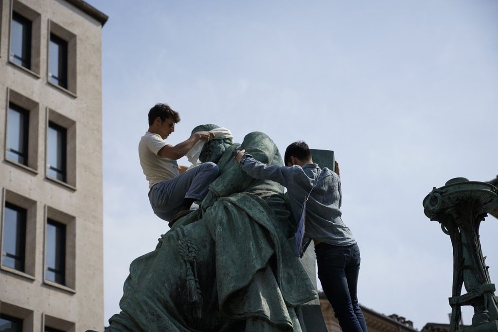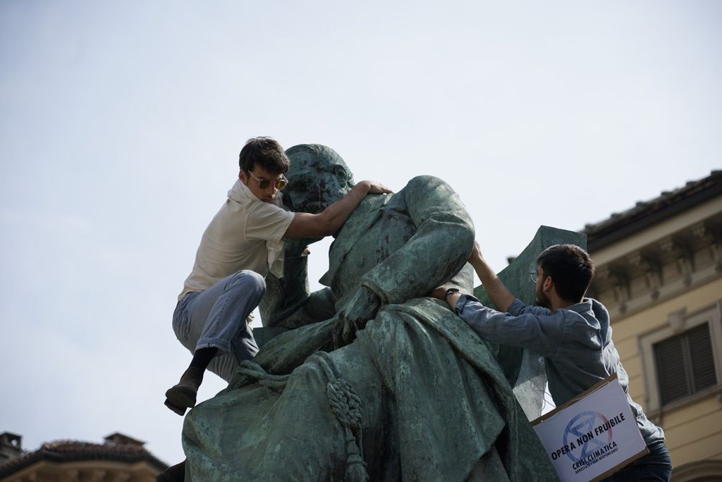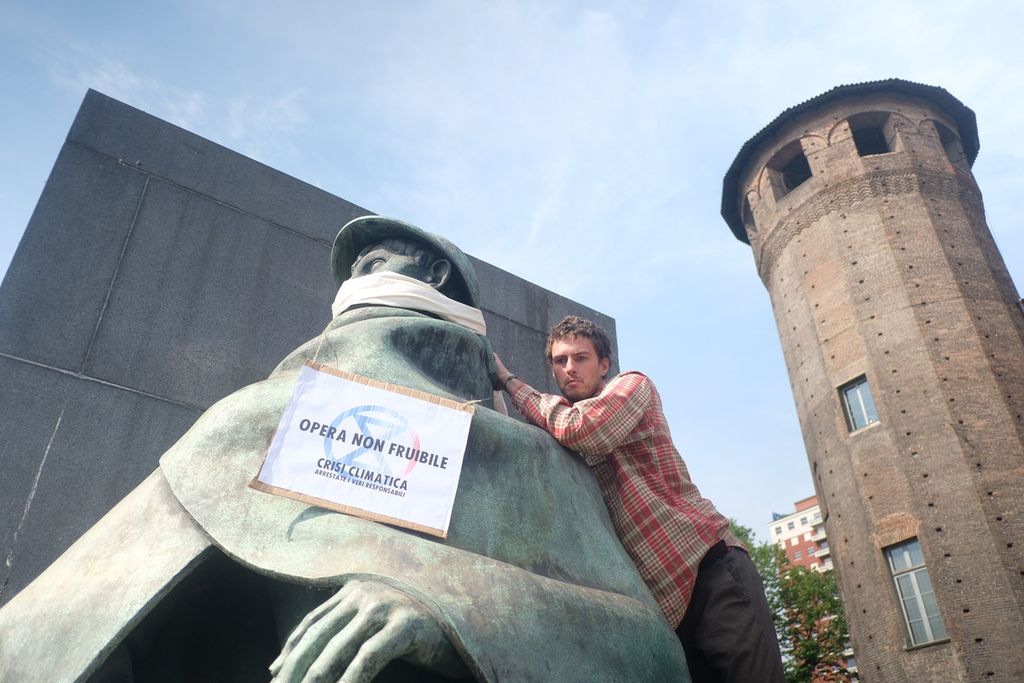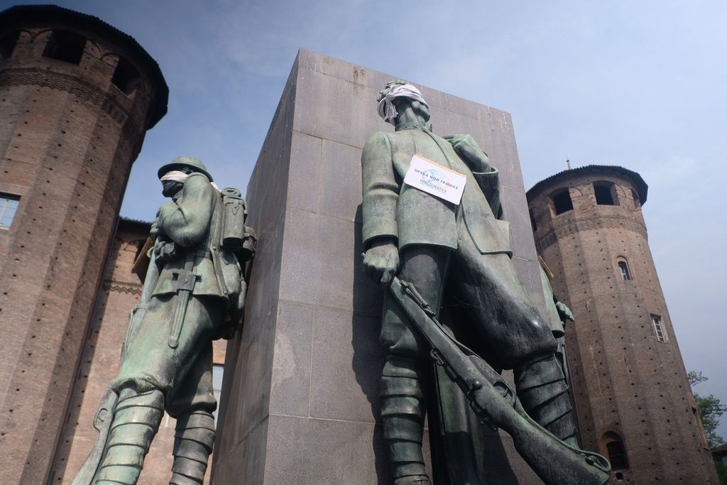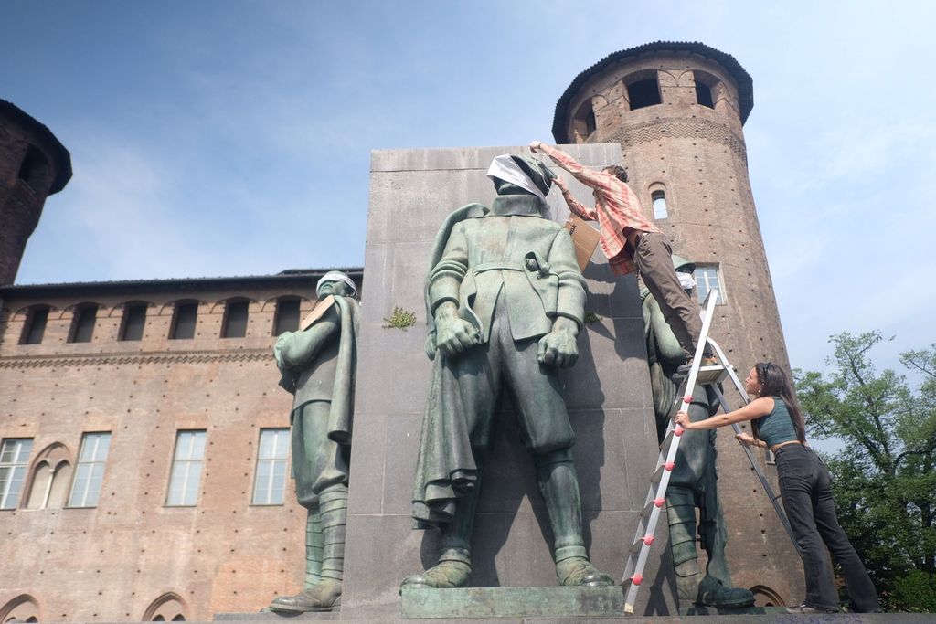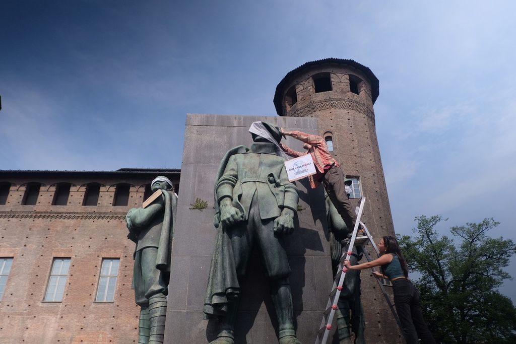 "Crisi climatica: arrestate i veri colpevoli", statue bendate a Torino. Il motivo [FOTO]