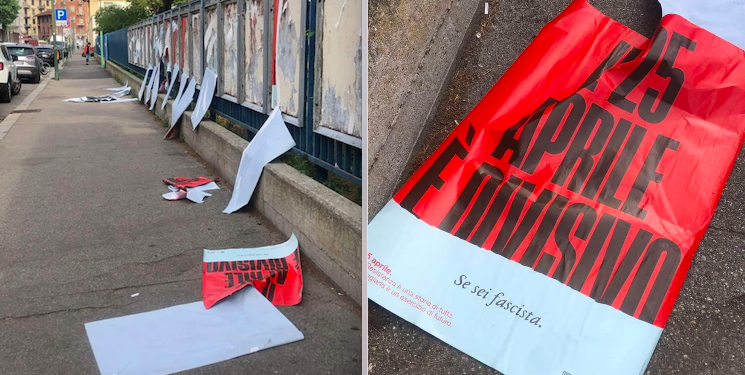 Manifesti del 25 Aprile strappati e gettati a terra. E' l'amara scoperta di questa mattina, in via Vigone, dove ignoti hanno tolto dai tabelloni i manifesti Arci che invitano i cittadini a in ricordo della Festa della Liberazione.
