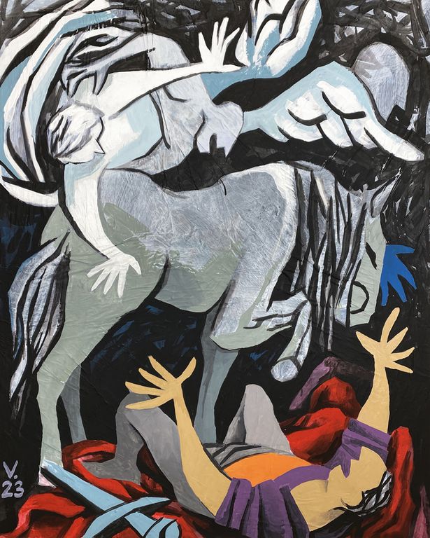 I soggetti scelti dall’artista fanno parte della nostra vita quotidiana oppure sono tratti dal mito o dalla storia dell’arte, ma vengono sempre rivisitati e trasformati dalla sua fervida immaginazione e da un sapiente intervento pittorico. Figure senza volto, di aperta interpretazione, con le quali è