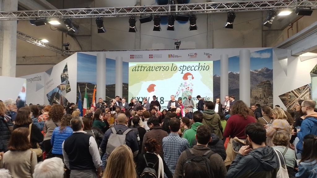 Attivisti di Extinction Rebellion e di Non Una di Meno hanno manifestato davanti allo stand della Regione Piemonte: 29 sono stati poi denunciati