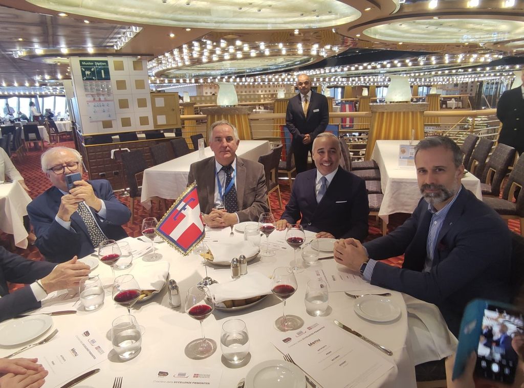 Gli ospiti italiani e internazionali presenti a bordo avranno l’opportunità di gustare piatti e prodotti del Piemonte a cena, navigando tra Savona e Civitavecchia (per poi visitare Oristano, Palma de Mallorca, Valencia e Marsiglia), e di conoscere il territorio con due incontri sulla cultura e la storia gastronomica regionale, tenuti dal professor Piercarlo Grimaldi, già rettore dell'Università degli Studi di Scienze gastronomiche di Pollenzo-Bra.