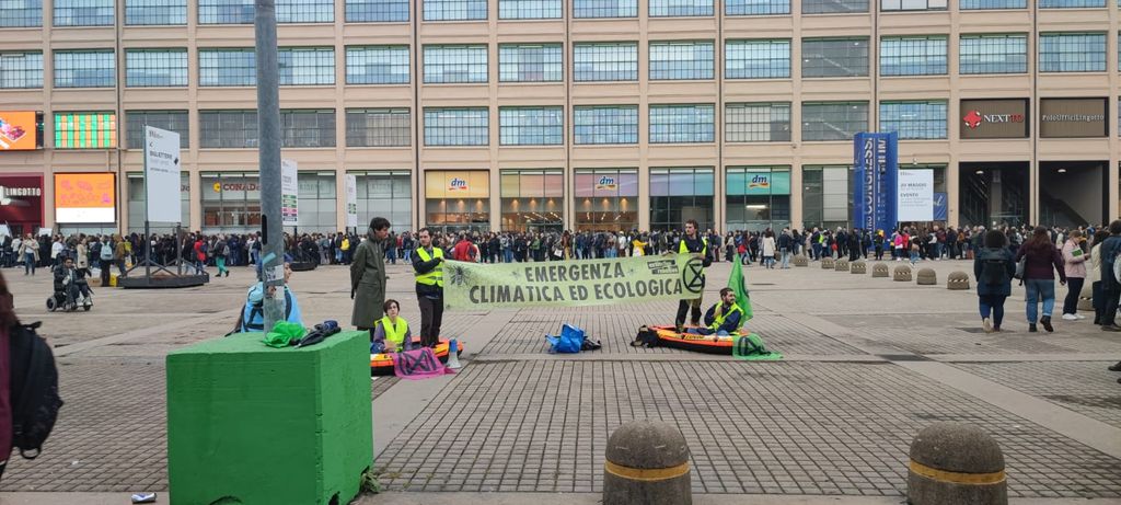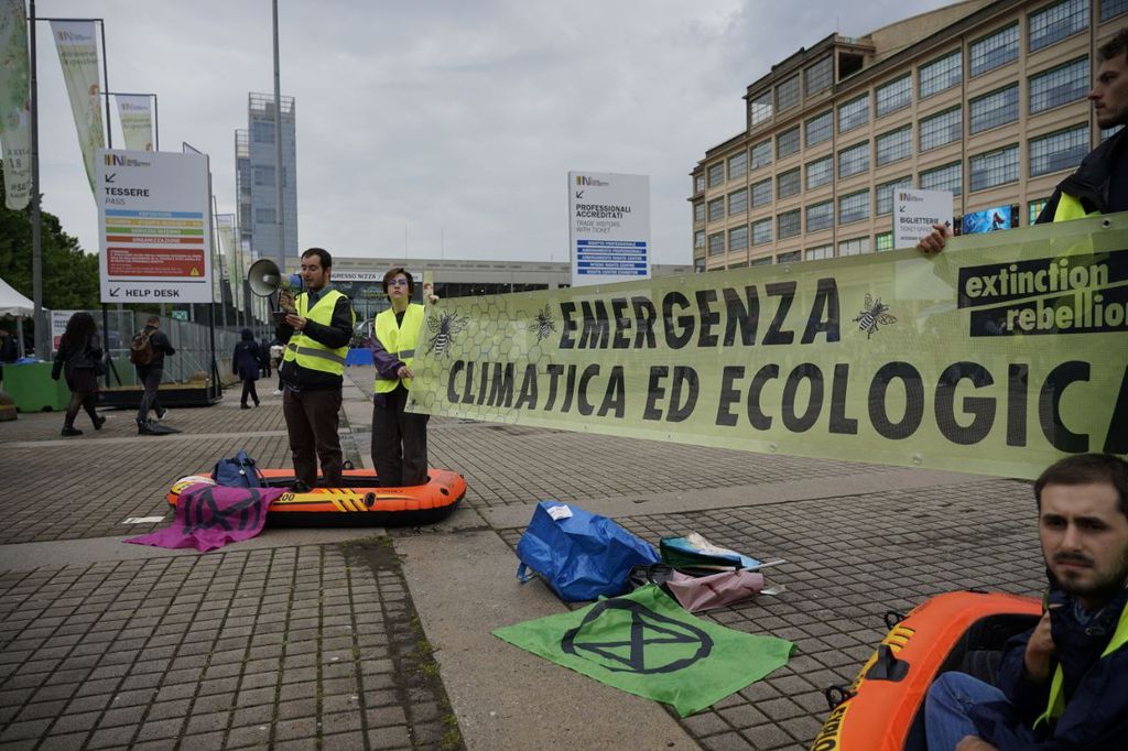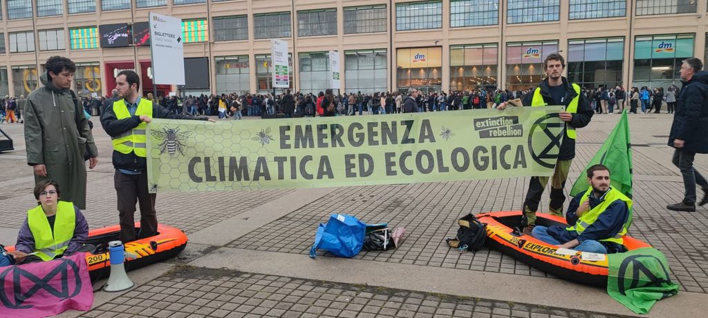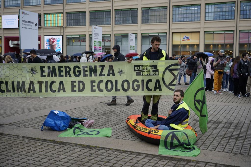 “Crisi climatica ed ecologica”: la protesta degli Extinction Rebellion con i canotti ricorda l'alluvione dell'Emilia [FOTO]