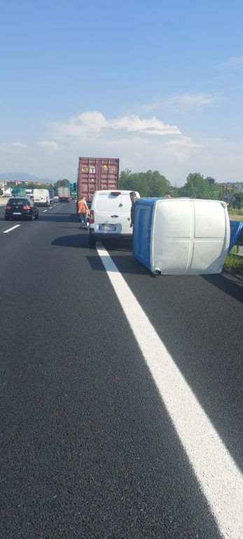 Paura in tangenziale: furgone perde in strada un bagno chimico, che investe un'auto e un Tir