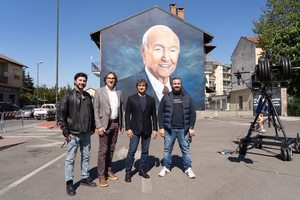 Così, dopo una visita fatta in gran segreto nello scorso inverno, il figlio del grande giornalista è tornato a Nichelino con una nutrita troupe della Rai per girare diversi minuti dello speciale che andrà in onda domani, dedicando spazio al murales realizzato da Davide Andreazza.