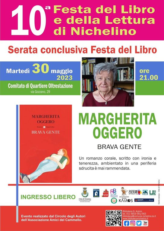 A Nichelino ultimi giorni della Festa del Libro e di Salone Off, con tanti nomi importanti della letteratura contemporanea, su tutti Margherita Oggero che sarà protagonista martedì 30 maggio.