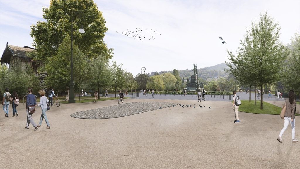 Uno dei punti principali del progetto prevede la totale rimozione dell’asfalto dai viali principali del parco: una superficie totale di 65mila metri quadrati (pari all’estensione di ben 15 campi da calcio) verrà convertita in pavimentazione permeabile, in calcestre e in cemento drenante, per ridurre l’effetto isola di calore. I viali saranno completamente pedonalizzati e interdetti al transito delle auto, richiamando la condizione originaria dei boulevard del Valentino nell’Ottocento.