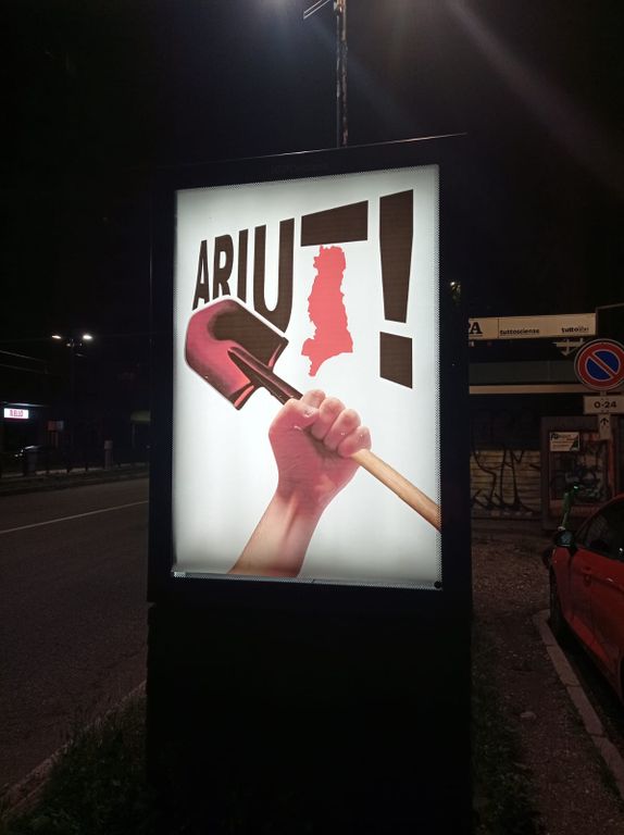 Anche il Banksy di Torino scende in campo per aiutare la popolazione emiliana, duramente colpita nelle scorse settimane dall'alluvione. Andrea Villa ha infatti creato creato il manifesto "Ariut!", dove è rappresentata una mano che impugna verso l'alto una pala, mentre il corpo della lettera T è sagomato come l'Emilia Romagna.