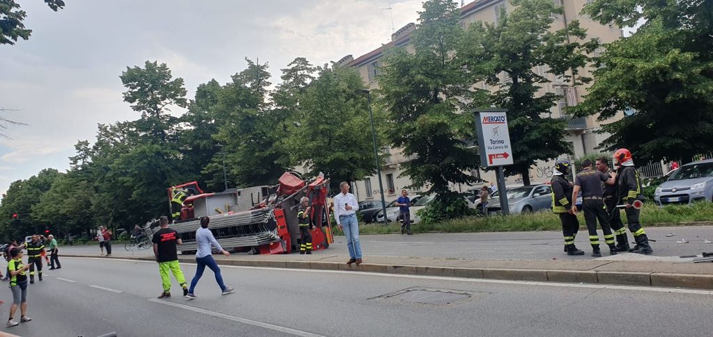 Paura in corso Lecce: il tram 13 si scontra con l'autoscala dei pompieri, feriti due passeggeri