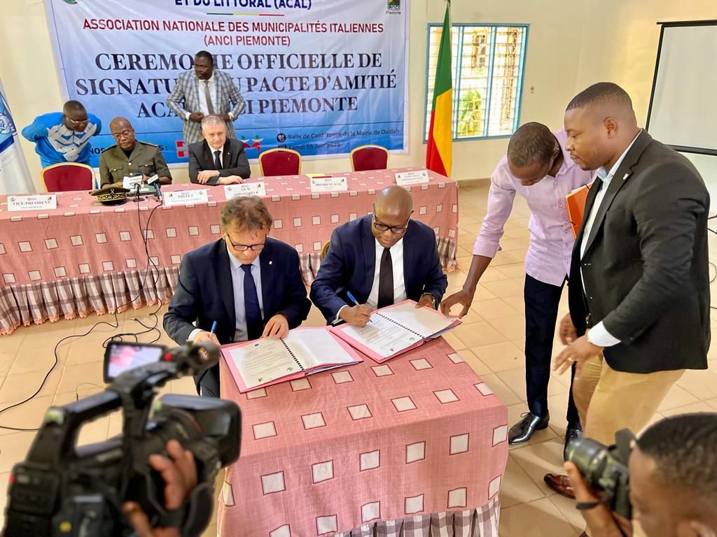 Si rafforza la collaborazione tra i Comuni piemontesi e quelli del Bénin: un nuovo patto di amicizia consentirà, infatti, di dare nuovo slancio ai progetti di cooperazione internazionale tra Piemonte e Africa. L'accordo è stato sottoscritto nella sala congressi del comune di Ouidah, paese d'origine del presidente della Repubblica beninese Patrice Talon, alla presenza delle autorità civili, militari e religiose e dell'ambasciatore italiano in Bénin e Nigeria, Stefano De Leo.