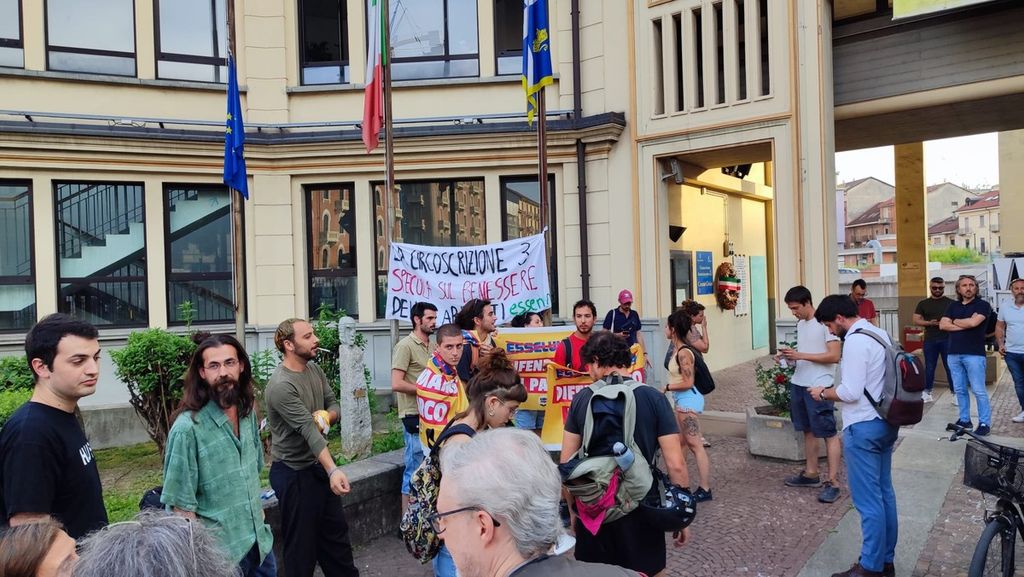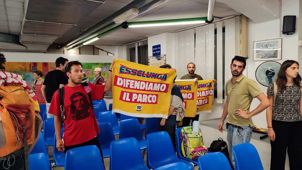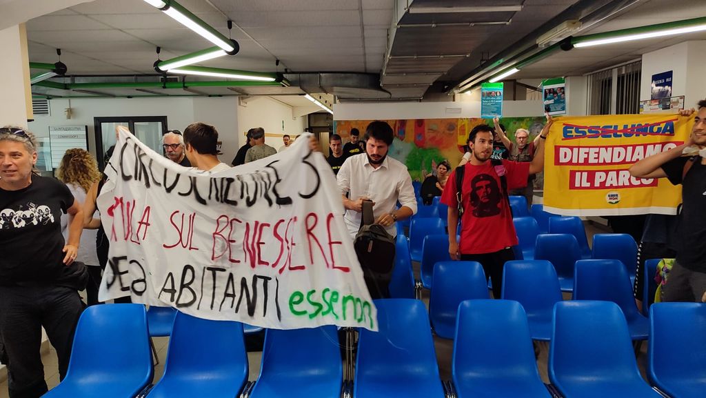 All'approvazione del parere sul progetto di Esselunga, gli attivisti hanno intonato cori ed esposto striscioni